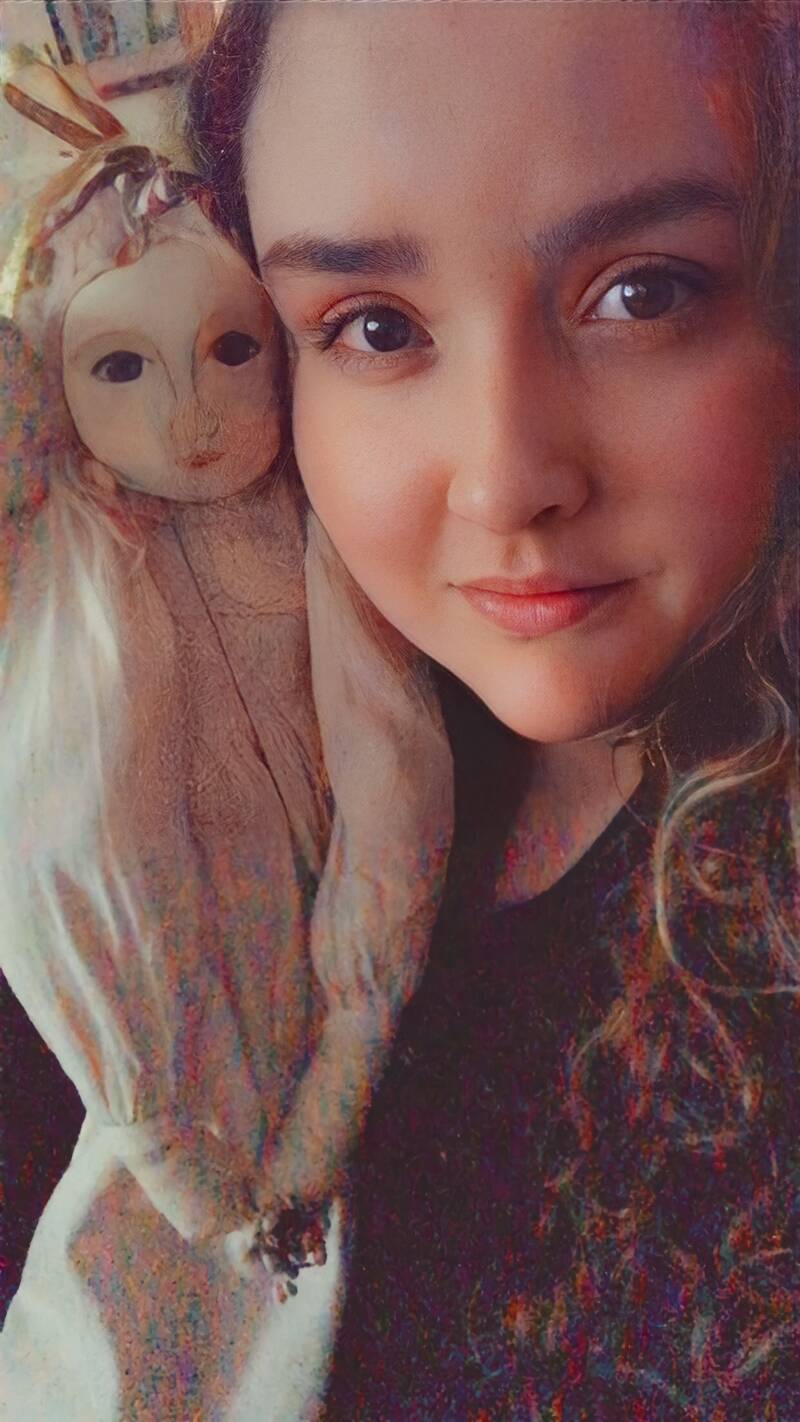 Also, on the fireplace was allegedly her doll, with whom I had to take a quick picture with. The picture together was enhanced with AI to color correct the darkness of the original photo I took.